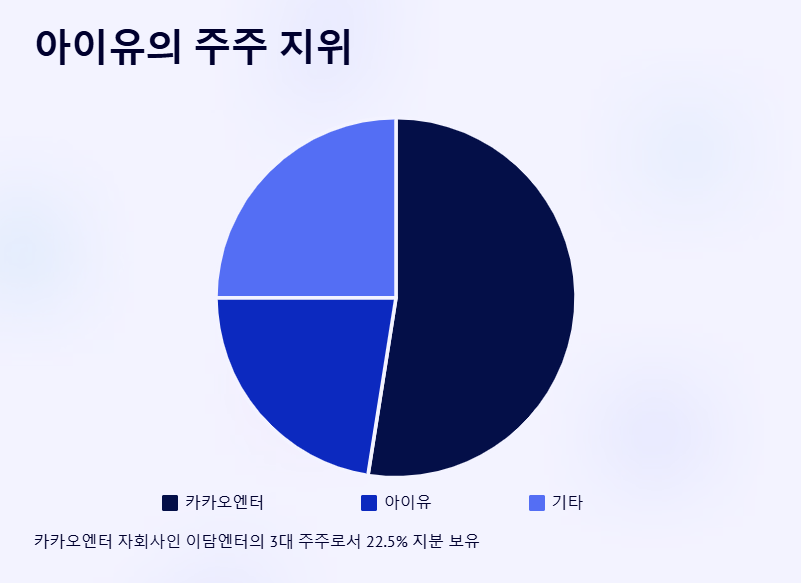 한편, 아이유는 이담엔터의 3대 주주이기도 하다. 카카오엔터가 52.5%로 최대주주이며, 아이유는 22.5%의 지분을 보유하고 있다. 이는 단순한 소속 아티스트를 넘어, 회사의 공동 운영자적 입지까지 확보하고 있다는 의미다.