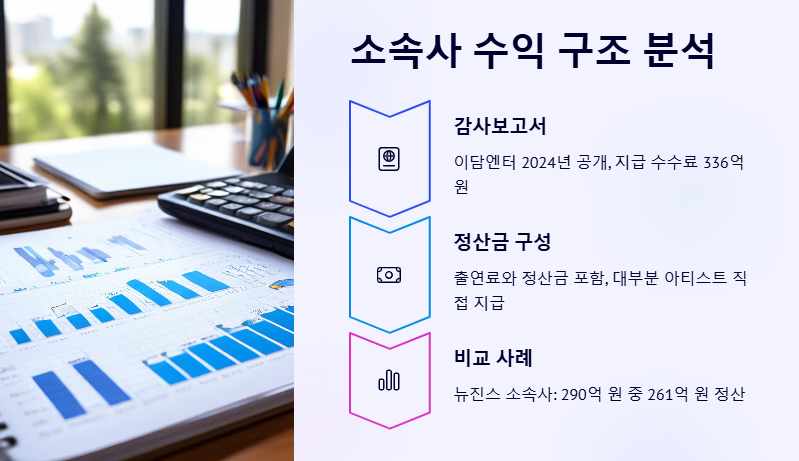 예를 들어, 걸그룹 뉴진스의 소속사 어도어는 2023년에 약 290억 원의 지급수수료를 지출했고, 이 중 약 261억 원이 뉴진스에게 정산된 것으로 추정된다. 이담엔터 역시 동일한 구조로 운영된다는 점을 감안하면, 아이유가 받은 정산금이 300억 원이라는 분석은 꽤 타당하다.