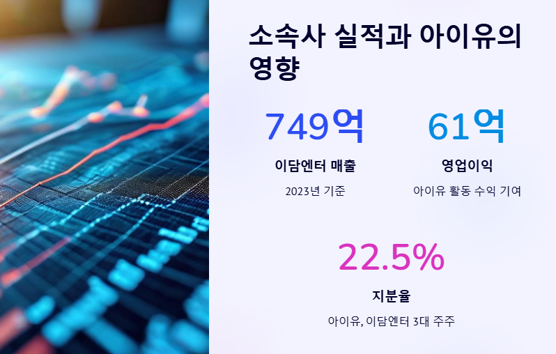 아이유 정산금 300억이라는 추정은 그녀의 소속사 실적과도 직결된다. 이담엔터테인먼트는 2023년 기준 매출 749억 원, 영업이익 61억 원을 기록했다. 이 중 상당 부분이 아이유의 활동에서 비롯된 수익이다. 음원 발매, 콘서트 투어, 드라마 출연 등을 통해 아이유는 다방면에서 수익을 창출했고, 그 덕분에 이담엔터의 실적도 눈에 띄게 상승한 것이다.