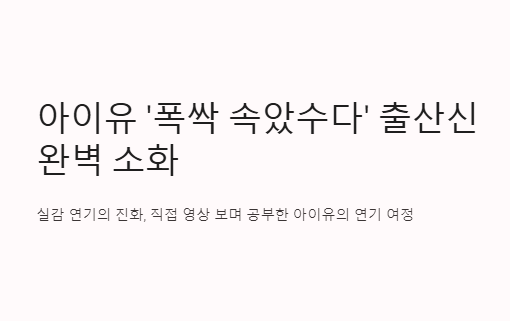 아이유 출연 드라마, '폭삭 속았수다' 출산신 완벽 소화, "직접 영상 보며 공부"
