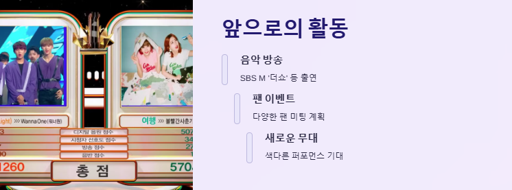 A. SBS M ‘더쇼’를 시작으로 다양한 음악 방송과 팬 이벤트에 참여할 예정입니다.