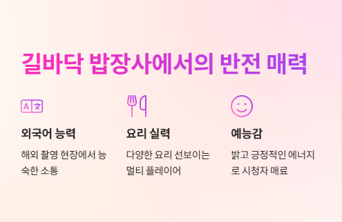 해외 촬영 현장에서 외국어 능력은 물론, 요리와 서빙, 고객 응대까지 척척 해내며 ‘멀티 플레이어’로 활약 중이다.