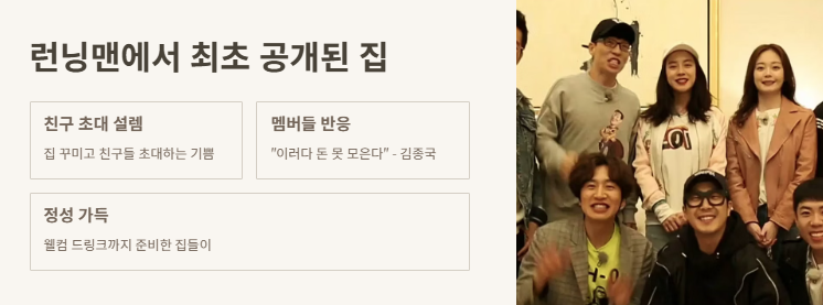 내가 집을 처음 꾸미고 나서 제일 설렜던 순간이 바로 친구들 초대했을 때였거든. 근데 요즘 핫한 지예은 언니도 방송에서 집을 처음 공개했대! 그것도 런닝맨에서 말이지. 진짜 런닝맨 멤버들이 예은 언니네 집에 놀러가서 직접 룸투어도 하고, 감성 터지는 집을 구경했다는데... 그 반응이 정말 너무 현실적이라 나도 웃음 참느라 혼났어. 김종국 오빠가 “이러다 돈 못 모은다”는 말 했을 때, 딱 우리 엄마 멘트 같았달까.