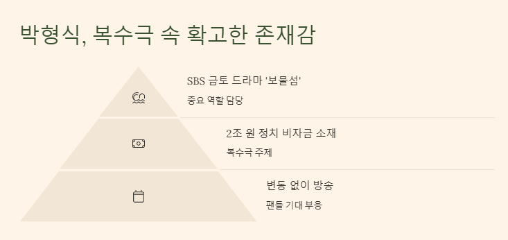 한편, 박형식은 SBS 금토 드라마 ‘보물섬’에서 중요한 역할을 맡고 있다. 이 작품은 2조 원 정치 비자금을 소재로 한 복수극으로, 이번 주에도 변동 없이 방송되며 팬들의 기대에 부응했다.