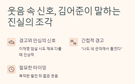 김어준의 미소가 의미하는 것은 단순한 여유의 표현이 아니라, 정치와 시사를 관통하는 통찰의 결과물로 해석되기도 한다. 마치 '다 알고 있다'는 듯한 눈빛과 함께 나온 그 짧은 웃음은 오히려 많은 이들의 긴장을 유도했다.