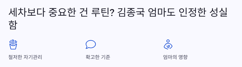 김종국 엄마 얘기도 방송에 자주 나오잖아. 되게 깔끔하고 엄격한 분 같더라고. 근데 김종국이 저렇게 철저하게 절약하는 건, 어쩌면 엄마 영향 아닐까 싶었어. 자기관리는 철저하면서도, 세차는 “필요 없다”는 확고한 기준이 있는 거 보면, 진짜 루틴과 철학이 생활화돼 있는 느낌? 나도 저런 마인드 좀 배우고 싶더라.