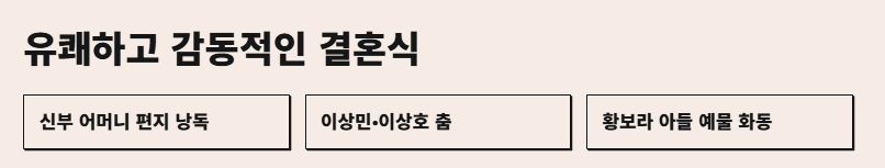 A. 유쾌하고 감동적인 연출, 많은 하객과 동료애, 아버지 대신 입장한 감동 실천도 있었어요.