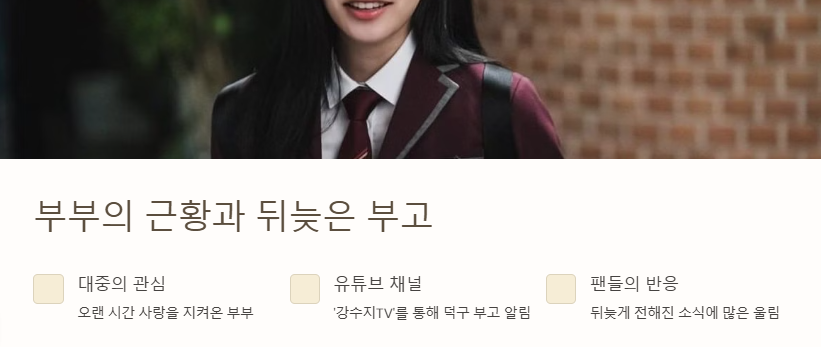이처럼 김국진 강수지 부부가 겪은 슬픔은 그들을 사랑하는 대중의 가슴에도 전달되었다. 오랜 시간 조용히 간직해 온 그 아픔은 진심을 담은 이야기로 다시 한 번 팬들에게 다가갔다.