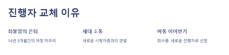Q. '한국인의 밥상' 진행자가 왜 바뀌었나요?