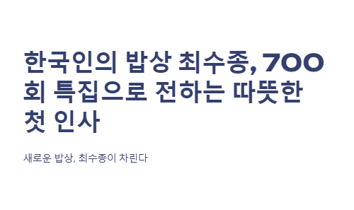 ‘한국인의 밥상 최수종’은 단순히 새로운 진행자가 바뀐 예능 프로그램 이상의 의미를 갖는다. 700회를 맞은 이번 특집은 최수종이 직접 발로 뛰며 각 지역을 다니던 최불암의 뒤를 잇겠다는 의미와 더불어, 밥상이라는 따뜻한 공간에서 사람과 사람 사이의 이야기를 다시금 엮어가는 첫 걸음이기도 하다.