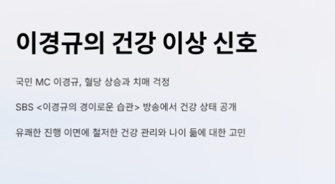 이경규프로필, 당뇨, 건강 이상 신호? 혈당 상승·치매 걱정
