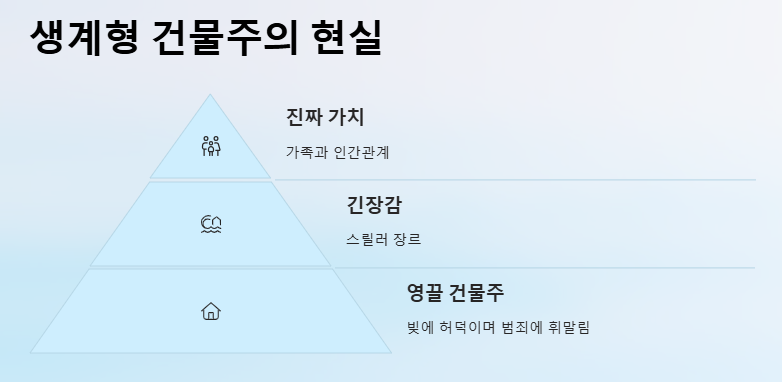 부동산 성공신화가 아닌, 생계형 건물주의 삶과 그로 인한 위기와 범죄, 가족애를 다룬 스릴러 드라마입니다.