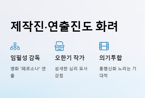 이 작품은 영화 ‘페르소나’의 임필성 감독과 오한기 작가가 의기투합한 기대작입니다. 섬세한 심리 묘사와 반전 있는 전개가 강점인 이들은 ‘대한민국에서 건물주 되는 법’을 통해 다시 한번 흥행신화를 노리고 있습니다.