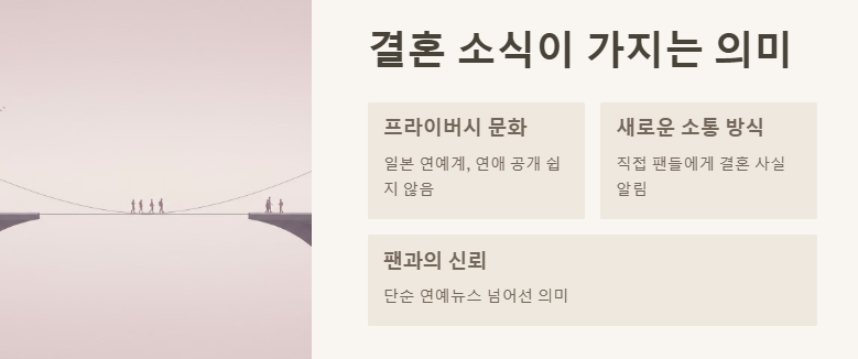 일본 연예계에서는 프라이버시 보호가 강조되는 문화 속에서 연애 공개 자체가 쉽지 않다. 그런데도 마에다 노조미는 자신이 직접 결혼 사실을 팬들에게 알리며 새로운 방식의 소통을 선택했다. 이러한 태도는 긍정적인 반응을 얻으며, "마에다 노조미 결혼" 이슈는 단순한 연예뉴스를 넘어 하나의 '팬과의 신뢰' 사례로 평가된다.