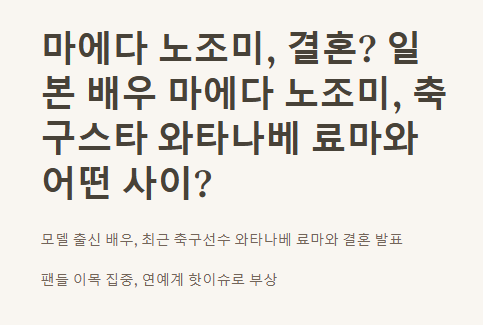 일본 배우 마에다 노조미 결혼 발표 이슈 정리