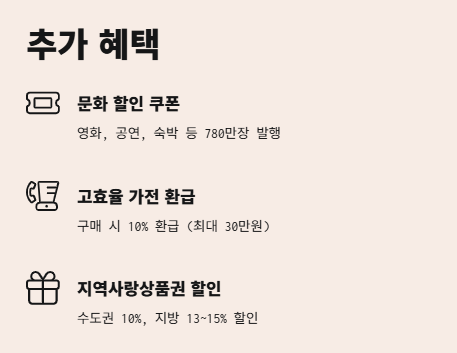 → 공연, 영화 할인과 고효율 가전 환급 가능