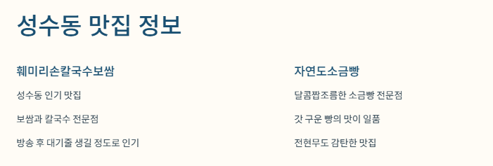 - 성수동 인기 맛집 ‘훼미리손칼국수보쌈’과 ‘자연도소금빵’ 방문 후기