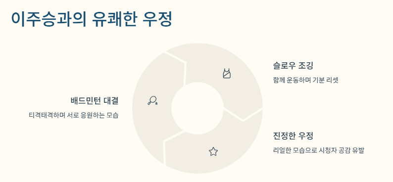 이주승은 방송 내내 전현무의 건강 루틴 파트너 역할을 톡톡히 했어. 배드민턴 대결에서 티격태격하면서도 서로 응원하는 모습이 진짜 웃겼어. 방송 보면서 나도 친구랑 운동하고 싶어지는 기분! 슬로우 조깅도 도전하는 모습이 리얼해서 너무 좋았어. 전현무가 “운동하면서 기분이 리셋된다”라고 말했을 때 나도 공감 100%였거든.
