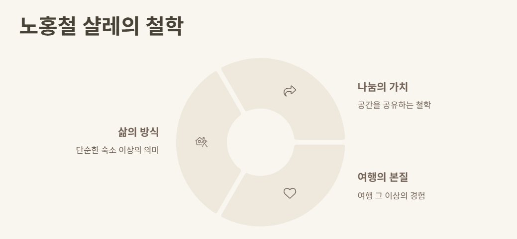 방송에서 봤을 때 그냥 숙소가 아니라 ‘삶의 방식’이 느껴졌어. 노홍철님이 왜 이 공간을 열었는지, 왜 나누고 싶다고 했는지가 느껴진달까? 단순한 여행지가 아니라 누군가의 철학이 담긴 집. 그런 곳에서 머문다면 여행 그 이상이 될 거 같아.