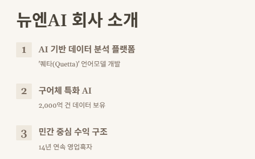 내가 솔직히 이거 하기 전엔 뉴엔AI가 뭐 하는 회사인지도 몰랐거든? 근데 찾아보니까 생각보다 대단했어.