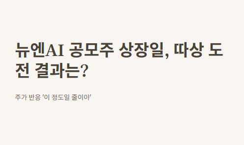 995:1 기관 수요예측, 1468:1 일반청약 경쟁률로 상장 전부터 화제! - 뉴엔AI 주가 흐름 강세 시작