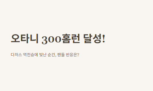 이번 오타니 300홈런 달성이 없었다면 승부가 어찌 됐을지 모른다는 말이 많았어요.