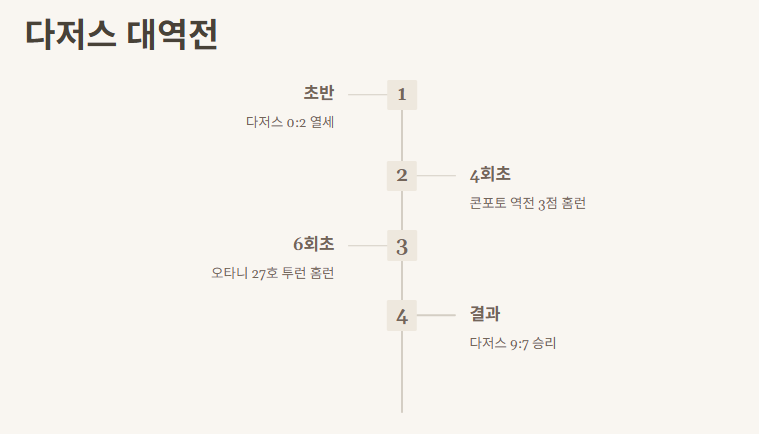 사실 이날 경기 초반에는 다저스가 0:2로 밀리고 있었어요. 그런데 4회초에 콘포토의 역전 3점 홈런이 터지더니 6회초엔 오타니가 27호 투런 홈런까지… 진짜 완전 명장면 연속이었어요.