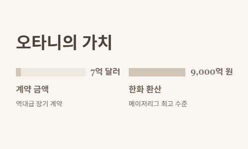 워낙 이번 시즌 활약이 대박이라서 저도 궁금해서 찾아봤는데요, 오타니 쇼헤이 선수의 연봉은 약 7억 달러(한화 약 9,000억 원대) 장기 계약으로 알려져 있어요. 헉…! 그야말로 역대급 계약.