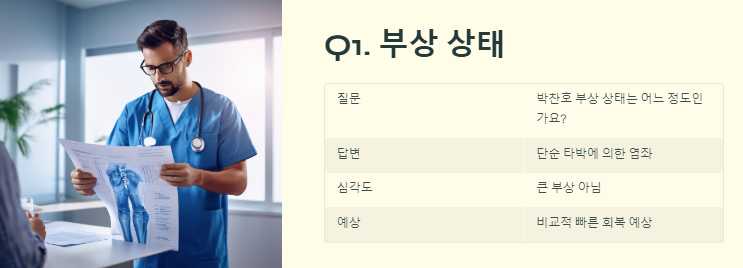 Q1. 박찬호 부상 상태는 어느 정도인가요?