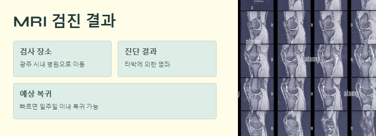 부상 이후 병원 이동 및 MRI 검진 결과