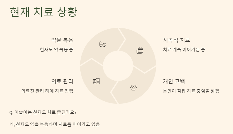 이솔이는 “지금도 약을 복용하며 치료 중”이라고 밝히며, 현재까지도 암 치료는 계속되고 있다고 고백했다. “이솔이 여성암 치료 중”이라는 소제목이 무겁게 다가오는 이유는, 단순히 의학적인 내용이 아닌 그녀의 삶 자체가 담겨 있기 때문이다.