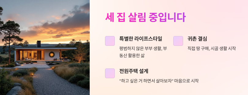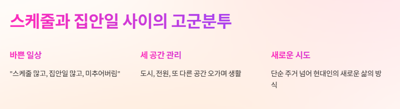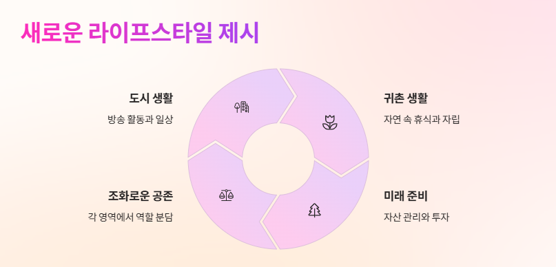 ‘박군 한영 세 집 살림’이라는 표현은 일상과 귀촌, 그리고 미래를 위한 선택들이 조화롭게 공존하는 부부의 삶을 담아내고 있다.