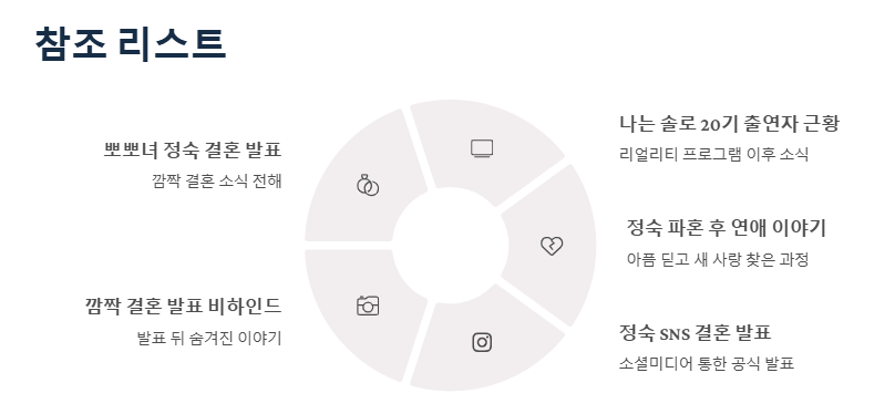 정숙은 자신의 유튜브 채널을 통해 직접 결혼 소식을 전했다. 그녀는 “결혼을 결심하기까지 정말 많은 고민이 있었다”며 솔직한 마음을 밝혔다. 또한, “이전의 경험이 있었기에 더 신중할 수밖에 없었다”며 과거 파혼을 겪었던 심경을 털어놓았다.