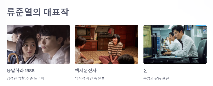 A. 응답하라 1988, 택시운전사, 더 킹, 돈 등이 대표작으로 꼽힌다.