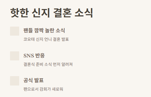 사실 나는 지난번에 SNS 피드에서 신지 결혼식 준비 중이라는 이야기를 먼저 봤거든.
