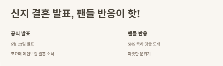 - 신지 결혼 발표, 팬 반응 뜨거워