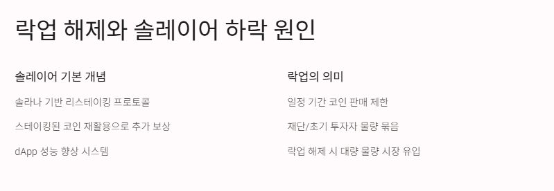 → 솔레이어 코인의 하락 원인 중 하나인 '락업 해제'가 시장에 큰 영향을 미치고 있습니다.