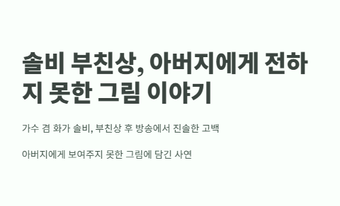 솔비가 최근 방송에서 부친상을 회상하며 눈물을 보였던 장면은 참 많은 생각을 하게 했어요. “내 그림을 보여드리지 못해 슬프다”는 말에, 저도 돌아가신 아버지를 떠올렸습니다. 저도 그렇게 부모님께 꼭 보여드리고 싶었던 일이 있었거든요. 어릴 적 꿈이었던 작가가 되어 블로그를 운영하게 된 지금, 아버지가 살아계셨다면 얼마나 자랑스러워하셨을까 싶어요.
