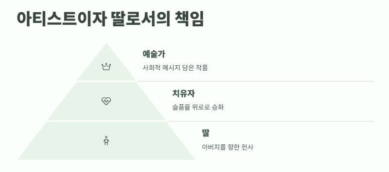 솔비는 단순한 연예인을 넘어 예술가이자 치유자로서 활동 중이다. 그녀의 그림은 사회적 메시지를 담고 있으며, 개인적인 슬픔조차 공감과 위로의 콘텐츠로 승화시켰다. 솔비 부친상 이후 그녀가 남긴 작품은 예술을 통한 헌사였다.