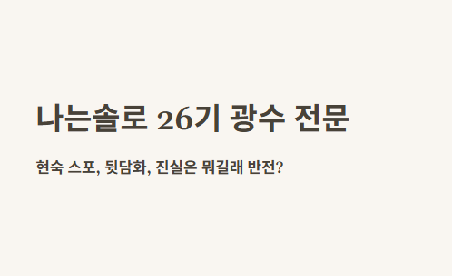 솔직히 <나는솔로 26기 광수 전문> 이라는 키워드를 처음 접했을 땐, 그냥 ‘사랑 많이 받은 출연자겠구나’ 싶었거든요. 근데 웬걸, 방송이 끝난 이후 광수를 둘러싼 이야기들이 더 대단해졌어요.