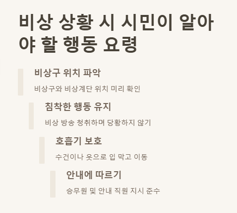 화재는 언제 어디서나 일어날 수 있습니다. 지하철 내 화재 발생 시 시민들이 숙지해야 할 기본 대처법은 다음과 같습니다.
