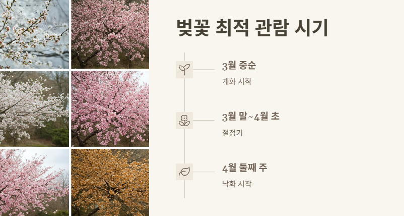 보통 3월 말부터 4월 초까지가 절정이에요. 4월 둘째 주 이전에 다녀오시는 걸 추천드려요.