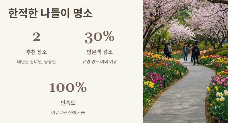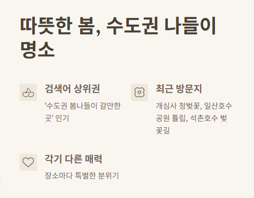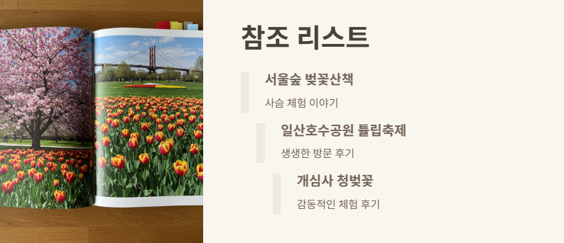 올해도 어김없이 찾아온 봄. '수도권 봄나들이 갈만한곳'이라는 키워드가 검색어 상위권에 오를 만큼 많은 분들이 나들이 장소를 고민하고 계시더라고요. 저 역시 매년 이 시기가 되면 마음이 들썩이곤 합니다.