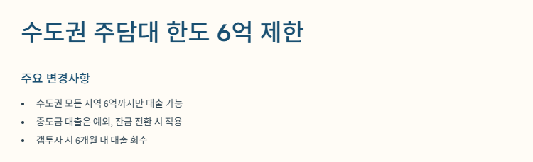 수도권 주담대 한도 6억 제한, 이렇게 바뀜!