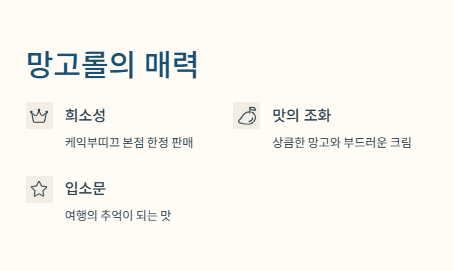망고시루는 비주얼이 화려하고, 망고롤은 맛이 더 풍성해요. 개인 취향 따라 달라요!