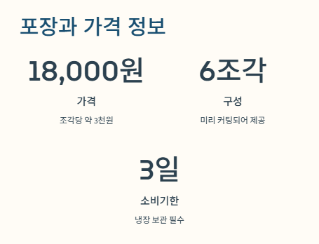 제가 받은 건 5월 19일이고, 소비기한은 5월 21일까지였어요. 딱 3일! 받자마자 바로 냉장 보관했고, 먹기 직전 살짝 꺼내놓으니 딱 좋더라구요. 성심당 망고롤 가격은 18,000원인데, 6조각이면 한 조각당 3천원 정도? 퀄리티 생각하면 아깝지 않아요.