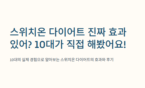 사실 다이어트란 말을 들으면 벌써 스트레스부터 받는 사람이 바로 저였어요. 특히 학기 초 교복 입을 때 배 부분이 딱! 조여오는데, 거울 보면 속상하더라구요. 그러다 친구가 알려준 스위치온 다이어트라는 걸 알게 됐고, "이거 진짜 효과 있음!"이라는 말에 솔깃해서 도전하게 됐어요.