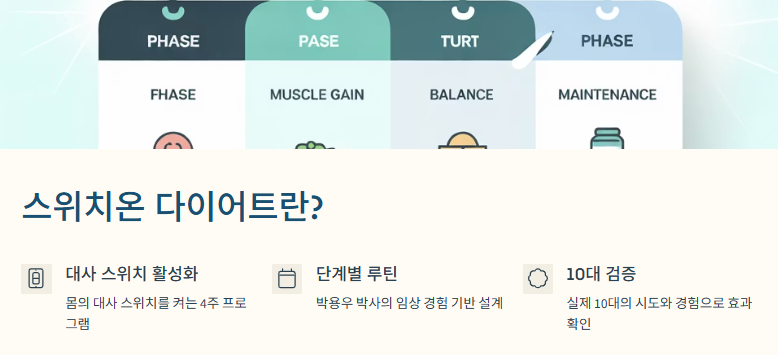스위치온 다이어트는 단순한 체중 감량이 아니라 몸의 대사 스위치를 켜는 데 집중하는 4주 루틴형 프로그램입니다. 박용우 박사의 임상 경험을 토대로 설계된 이 다이어트는 단계별 식단과 규칙을 기반으로 하며, 실제 10대의 시도와 경험을 통해 그 효과를 검증해 봤습니다.