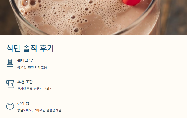 쉐이크 맛은? 음… 그냥 곡물 맛인데 단맛 거의 없음!