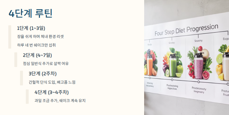 - 1단계 (1~3일): 장을 쉬게 하면서 체내 환경 리셋